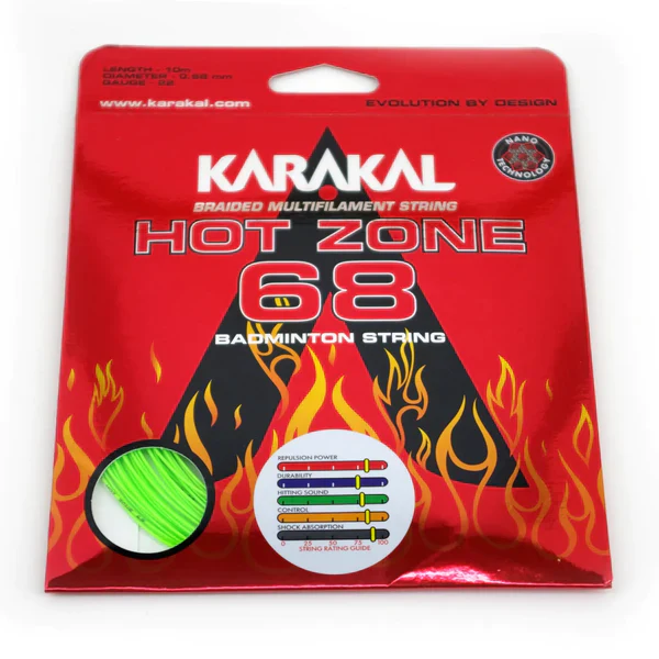 Karakal's Hot Zone 68 is a braided multifilament string which is great for players looking for an ultra- responsive and powerful string.